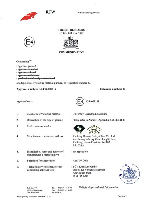 • Xuchang Huanyu Safety Glass Co., Ltd. ,formally founded on Oct 1st, 2004