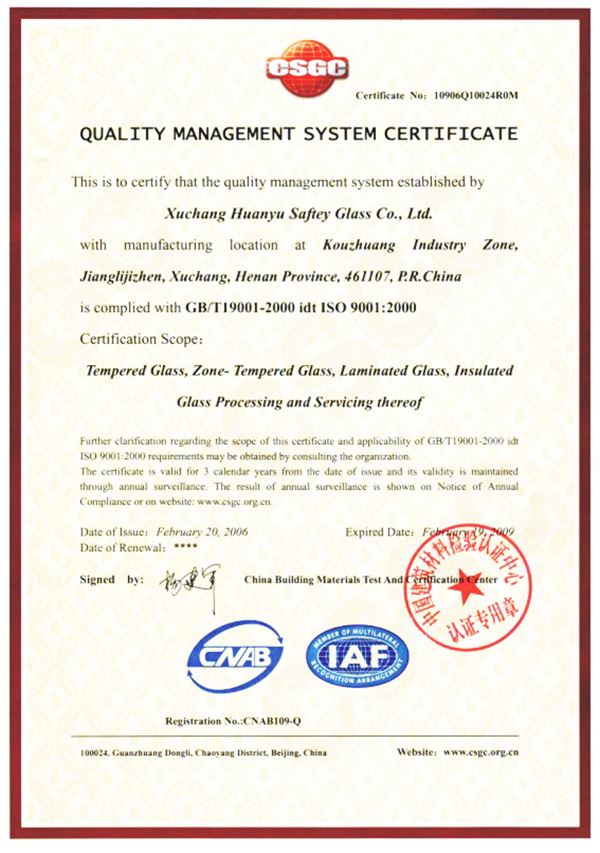 • Xuchang Huanyu Safety Glass Co., Ltd. ,formally founded on Oct 1st, 2004