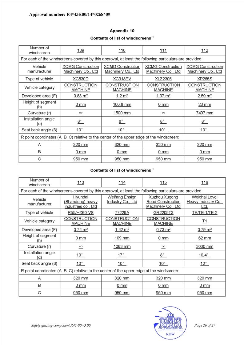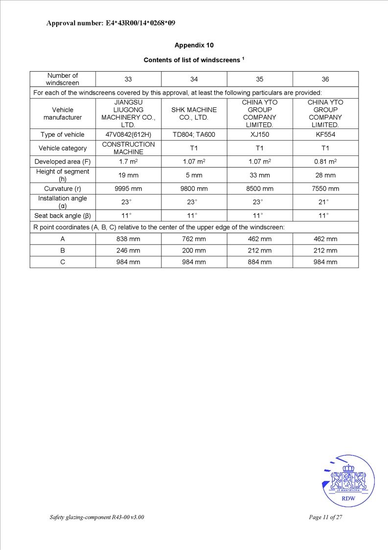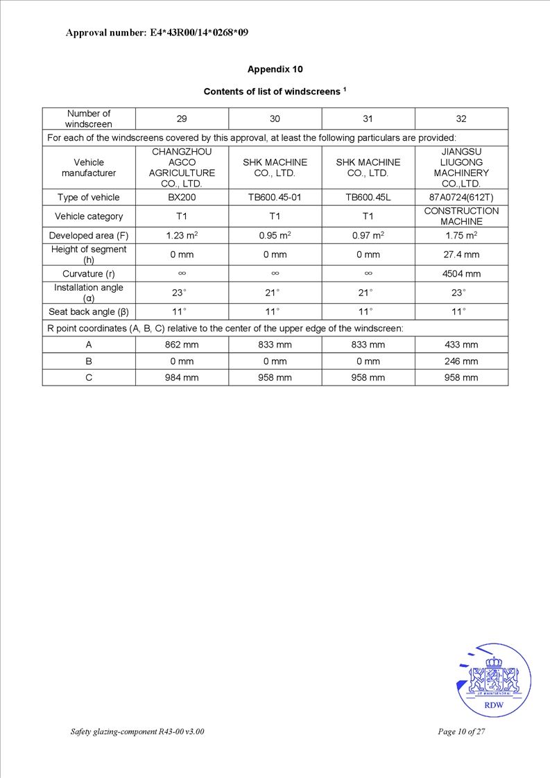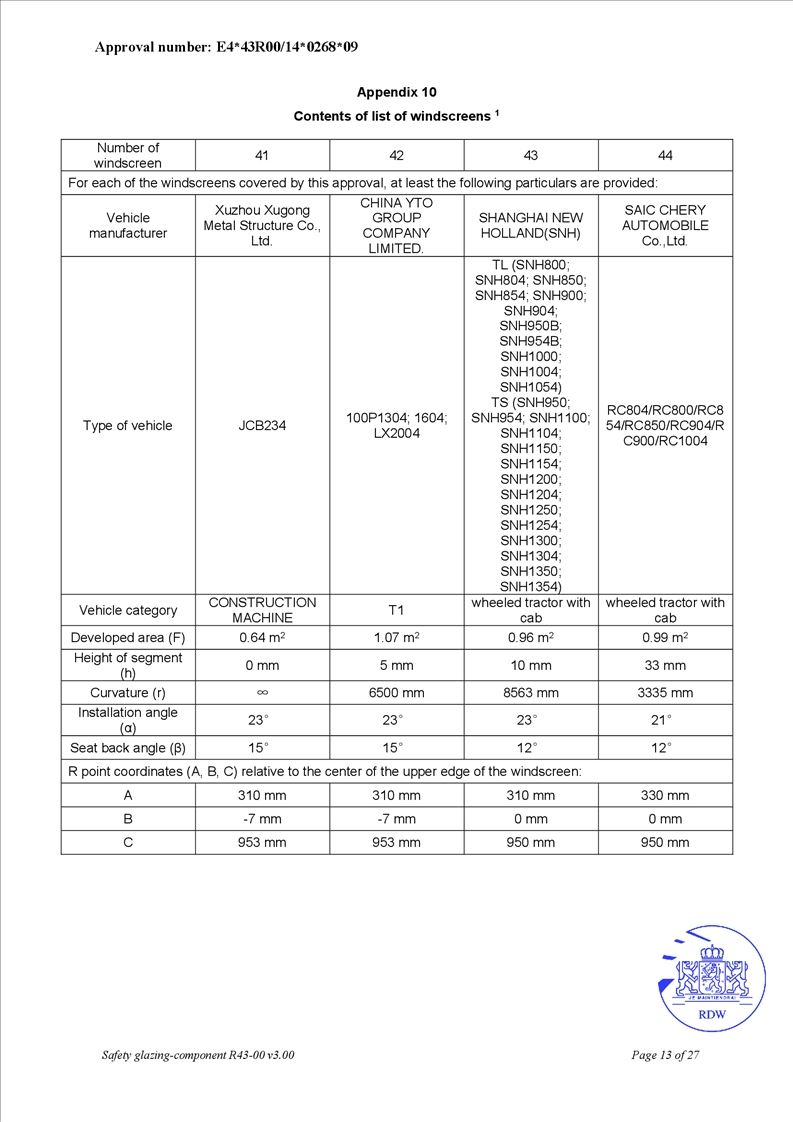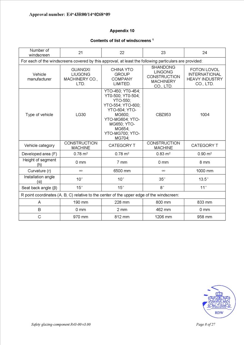 • OEM safety glass for agricultural tractors and engineering equipment