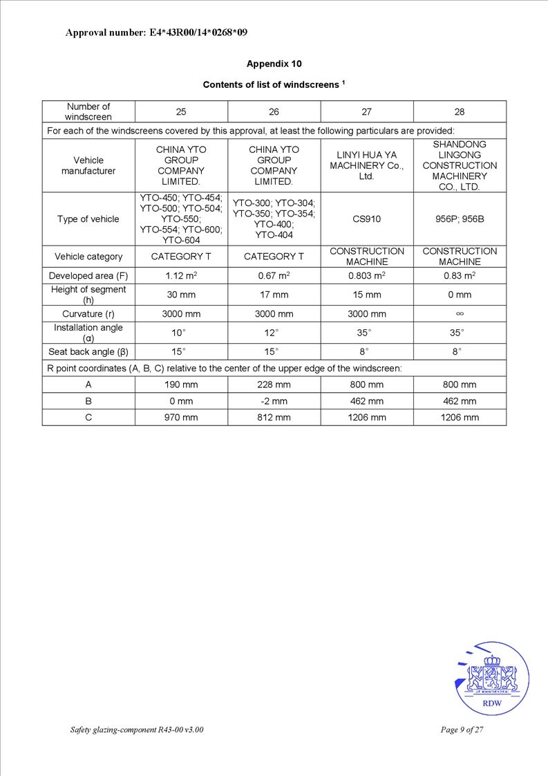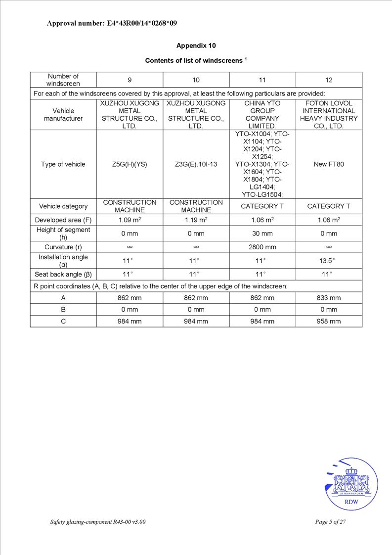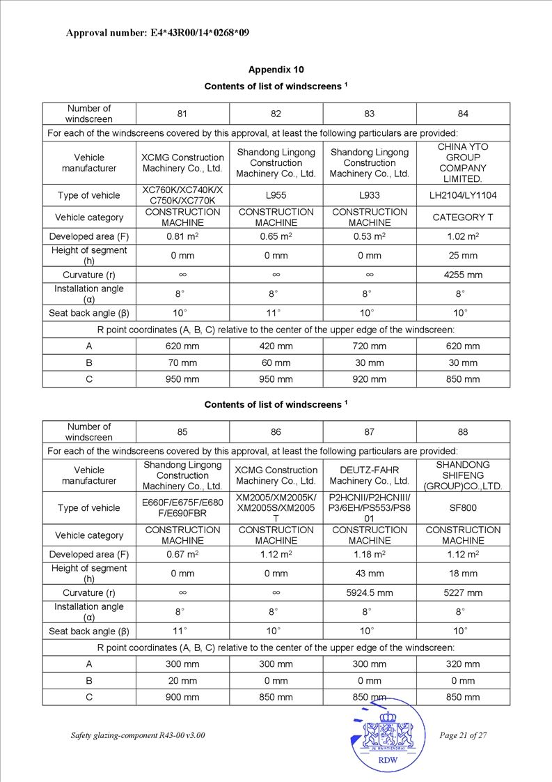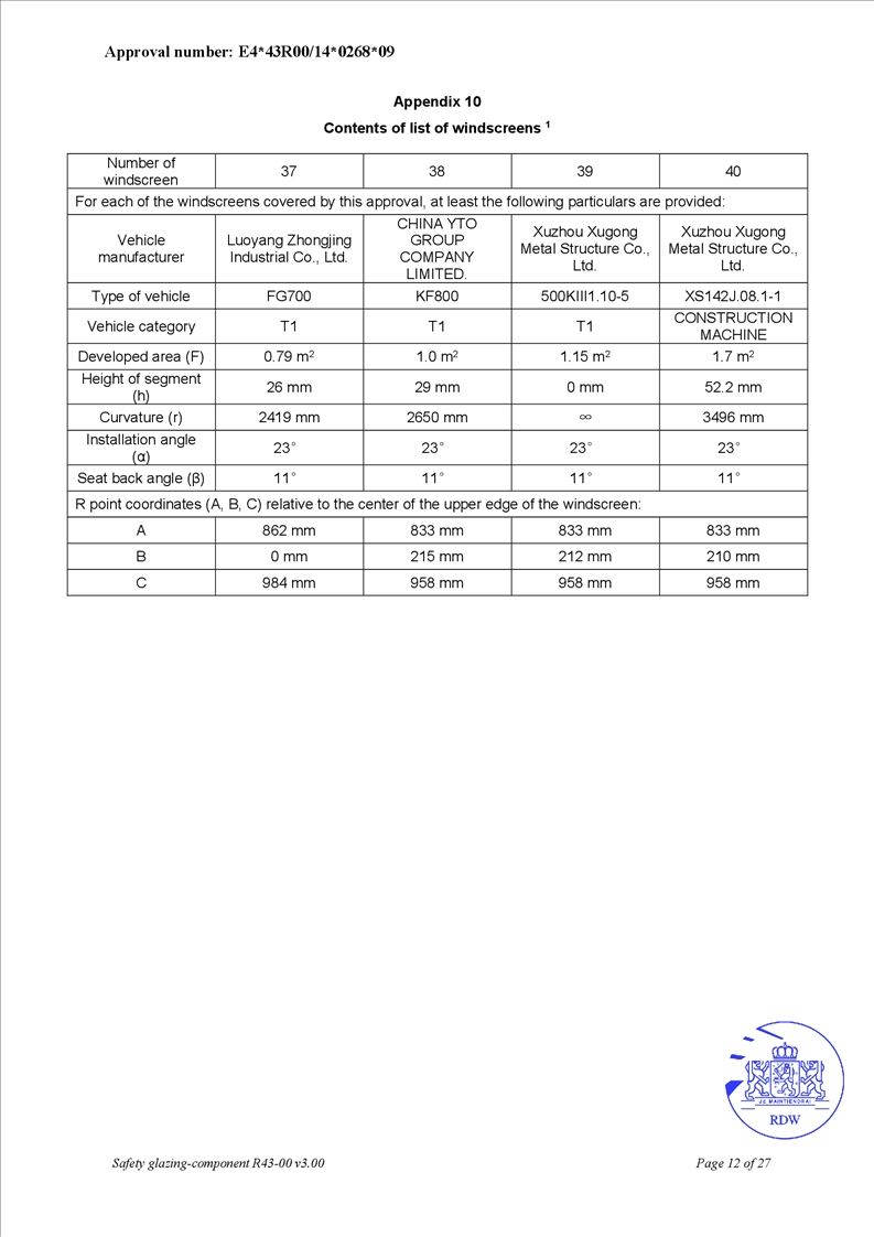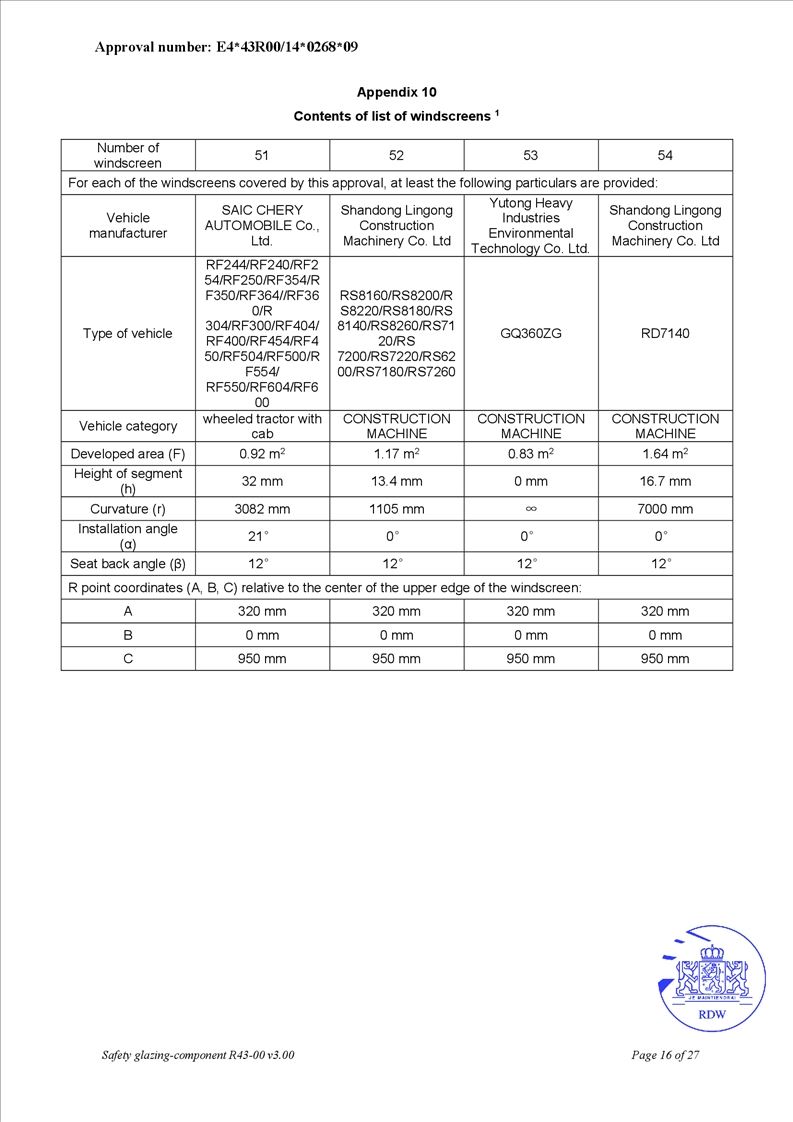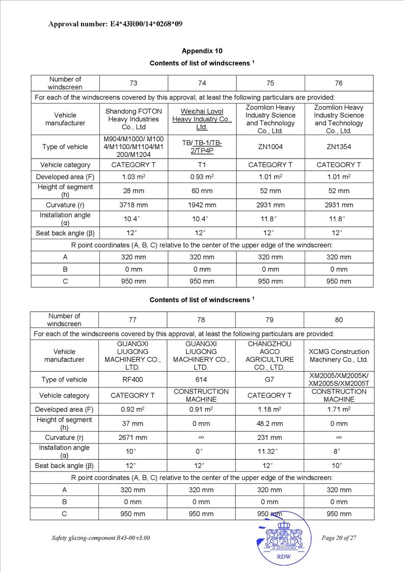• OEM safety glass for agricultural tractors and engineering equipment
