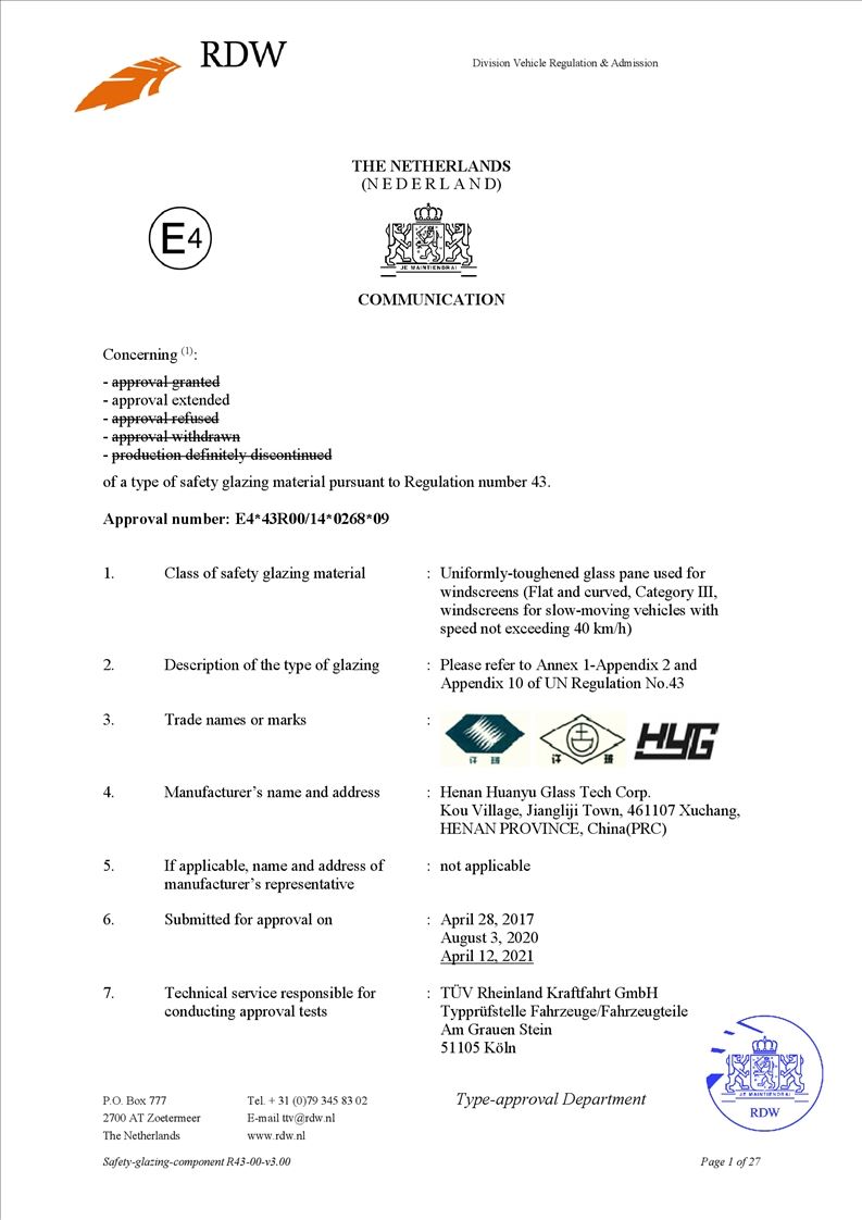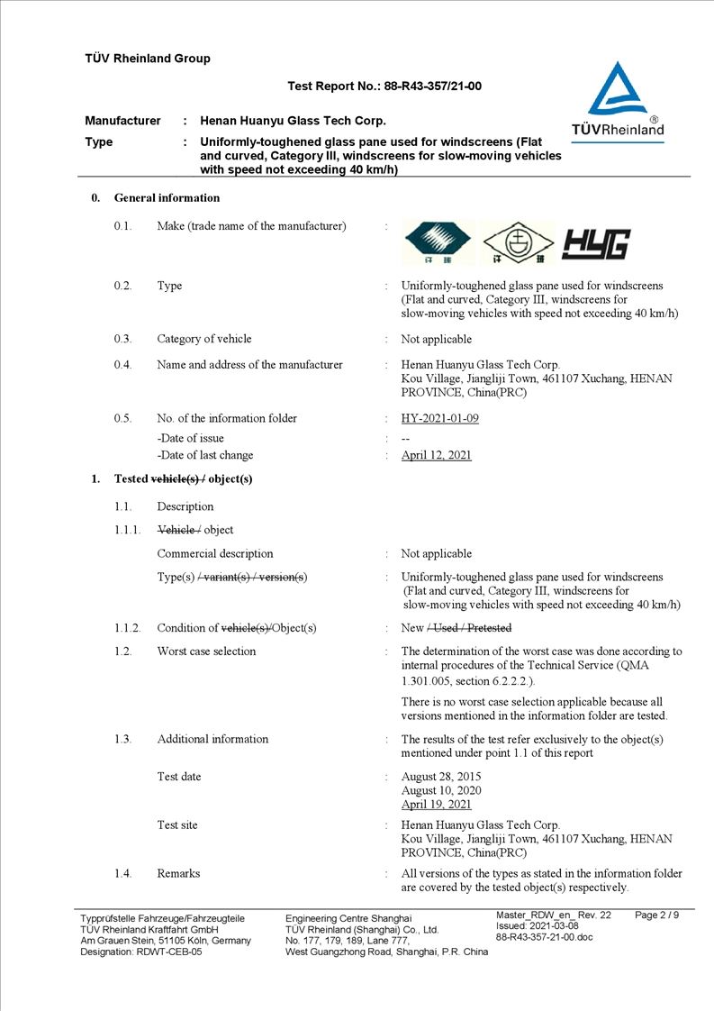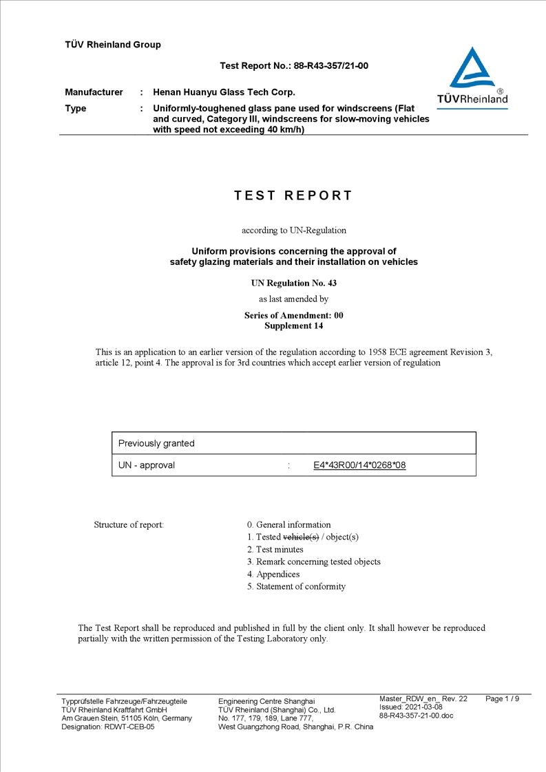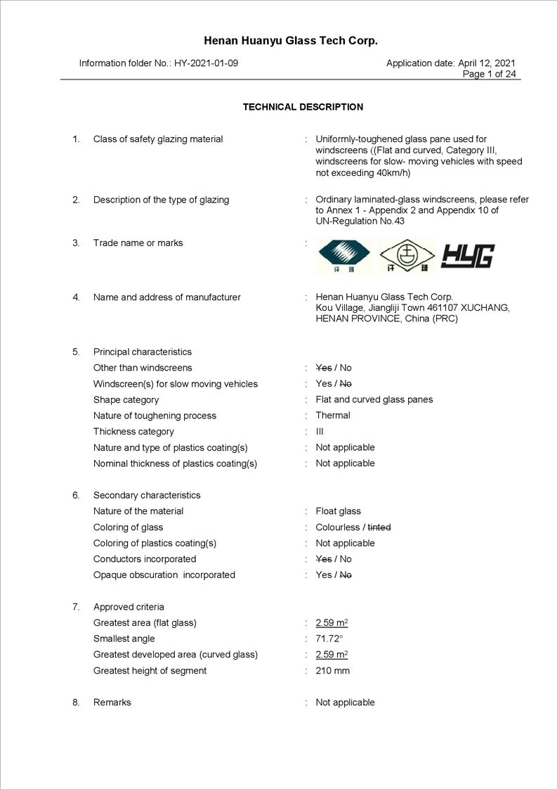 • Xuchang Huanyu Safety Glass Co., Ltd. ,formally founded on Oct 1st, 2004