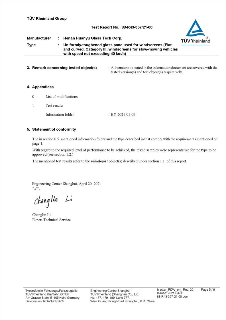 • Henan Huanyu Glass Technology Co., Ltd. annual output of 350000 square meters acceptance report publicity