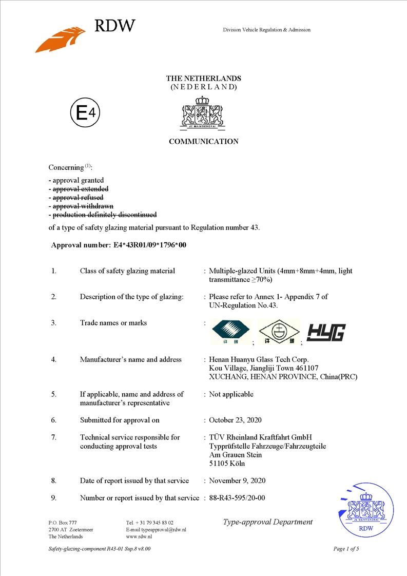 Bus laminated front windshield-Sound proof,heat-proof and energy-saving
