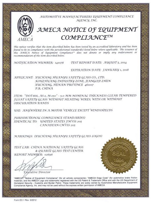 • Xuchang Huanyu Safety Glass Co., Ltd. ,formally founded on Oct 1st, 2004